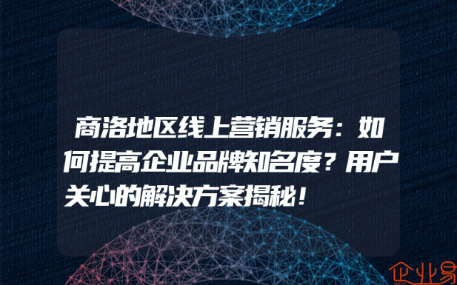 - 商洛地区线上营销服务:如何提高企业品牌知名度?用户关心的解决方案揭秘!