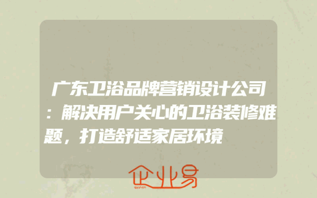 - 广东卫浴品牌营销设计公司:解决用户关心的卫浴装修难题,打造舒适家居环境
