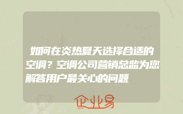 - 如何在炎热夏天选择合适的空调?空调公司营销总监为您解答用户最关心的问题