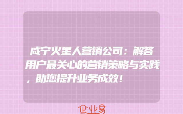 - 咸宁火星人营销公司:解答用户最关心的营销策略与实践,助您提升业务成效!