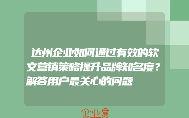- 达州企业如何通过有效的软文营销策略提升品牌知名度?解答用户最关心的问题