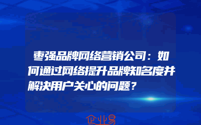 - 枣强品牌网络营销公司:如何通过网络提升品牌知名度并解决用户关心的问题?