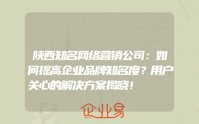 - 陕西知名网络营销公司:如何提高企业品牌知名度?用户关心的解决方案揭晓!