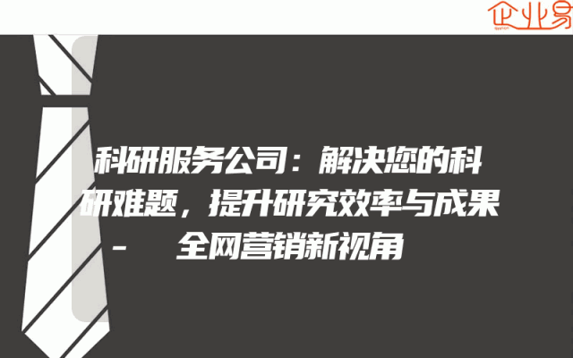 - 科研服务公司:解决您的科研难题,提升研究效率与成果 - 全网营销新视角