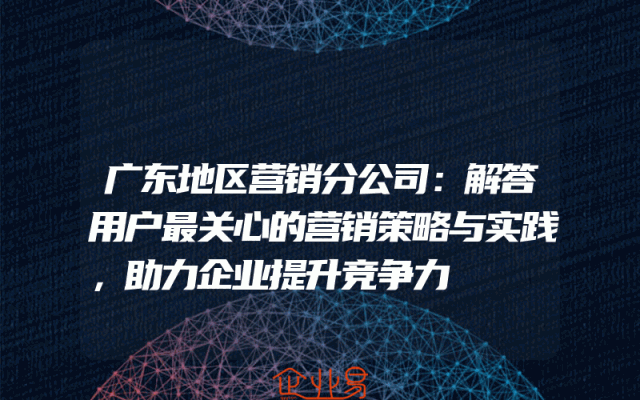 - 广东地区营销分公司:解答用户最关心的营销策略与实践,助力企业提升竞争力随着市场竞争的日益激烈,企业营销策略的重要性愈发凸显。作为一家专业的企业服务公司,广东地区的营销分公司致力于为企业提供最有效的营销策略和实践方案,帮助企业提升竞争力。本文