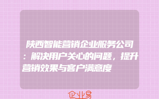 - 陕西智能营销企业服务公司:解决用户关心的问题,提升营销效果与客户满意度