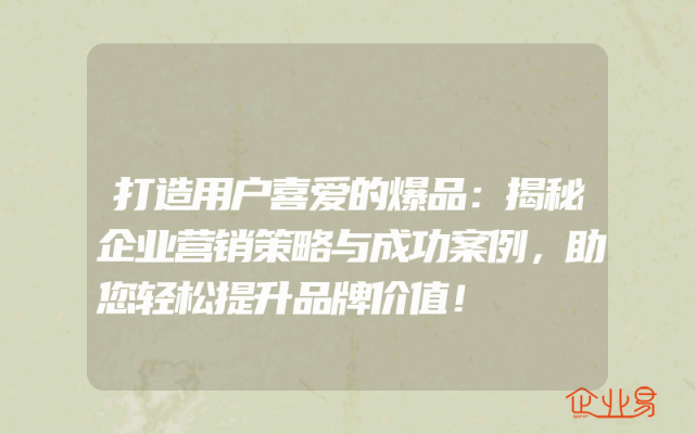 - 打造用户喜爱的爆品:揭秘企业营销策略与成功案例,助您轻松提升品牌价值!