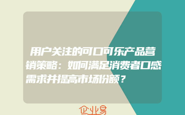 - 用户关注的可口可乐产品营销策略:如何满足消费者口感需求并提高市场份额?