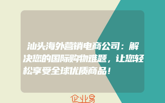 - 汕头海外营销电商公司:解决您的国际购物难题,让您轻松享受全球优质商品!