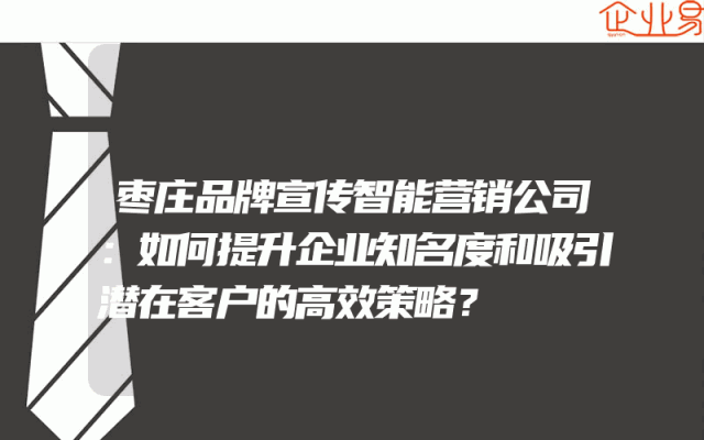 - 枣庄品牌宣传智能营销公司:如何提升企业知名度和吸引潜在客户的高效策略?