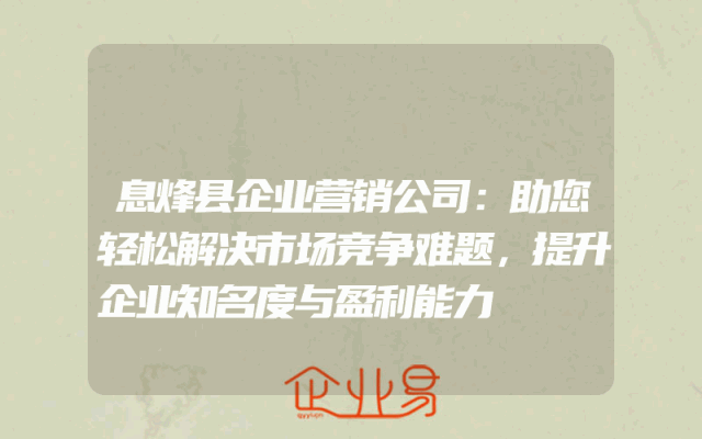 - 息烽县企业营销公司:助您轻松解决市场竞争难题,提升企业知名度与盈利能力