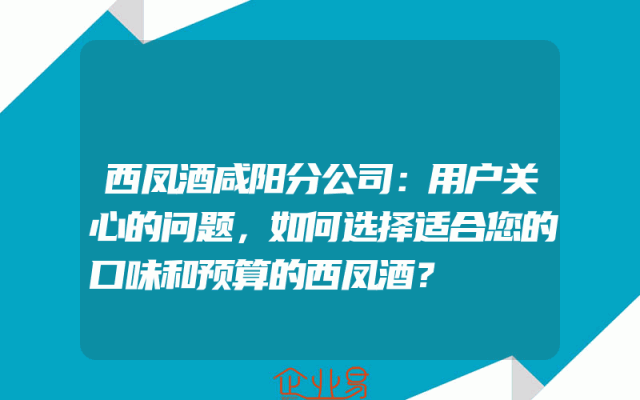 - 西凤酒咸阳分公司:用户关心的问题,如何选择适合您的口味和预算的西凤酒?