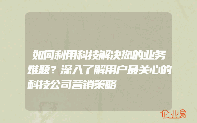 - 如何利用科技解决您的业务难题?深入了解用户最关心的科技公司营销策略
