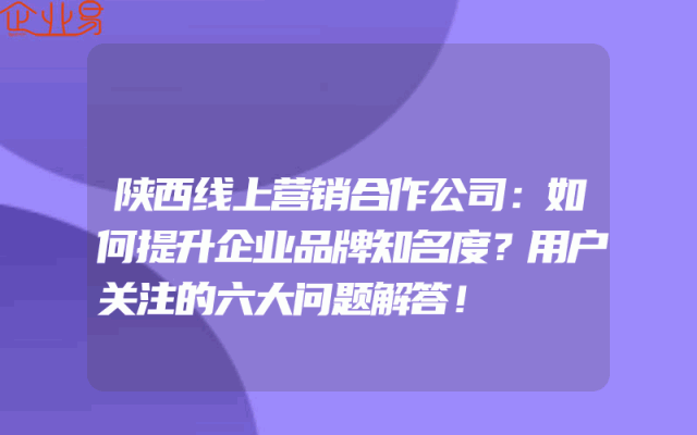 - 陕西线上营销合作公司:如何提升企业品牌知名度?用户关注的六大问题解答!
