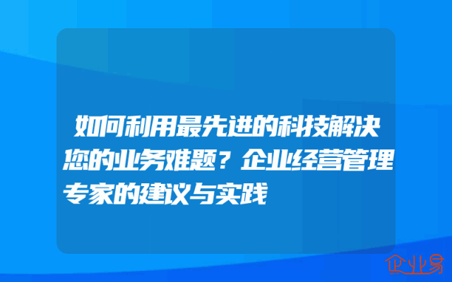 - 如何利用最先进的科技解决您的业务难题?企业经营管理专家的建议与实践