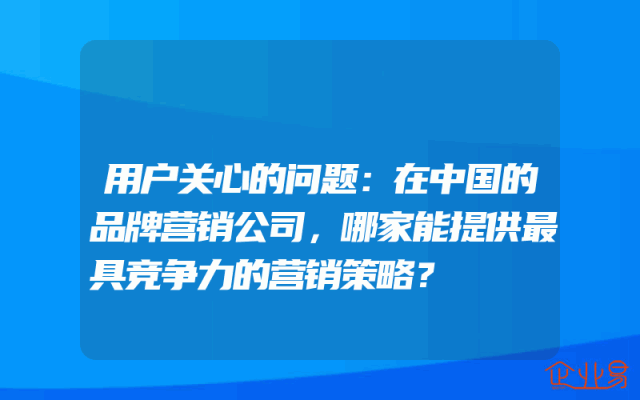 - 用户关心的问题:在中国的品牌营销公司,哪家能提供最具竞争力的营销策略?