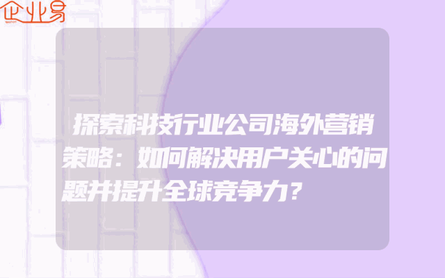 - 探索科技行业公司海外营销策略:如何解决用户关心的问题并提升全球竞争力?