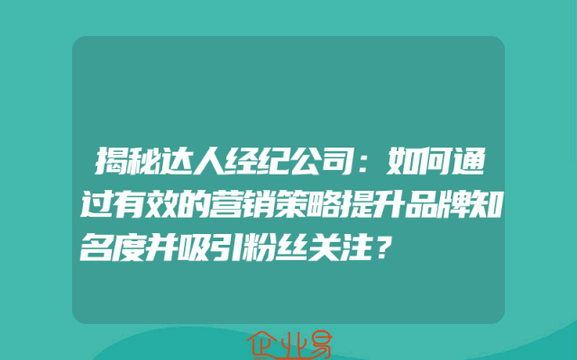 - 揭秘达人经纪公司:如何通过有效的营销策略提升品牌知名度并吸引粉丝关注?