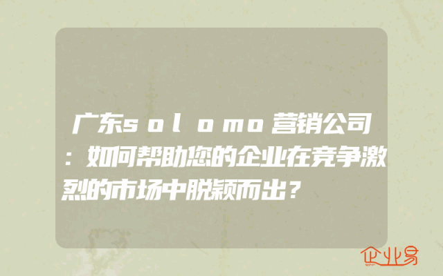 - 广东solomo营销公司:如何帮助您的企业在竞争激烈的市场中脱颖而出?