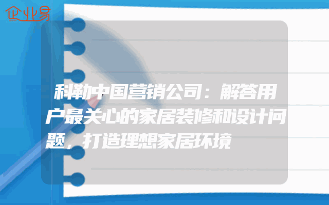 - 科勒中国营销公司:解答用户最关心的家居装修和设计问题,打造理想家居环境随着生活水平的提高,越来越多的人开始关注家居装修和设计。科勒中国营销公司作为一家专业的企业服务提供商,致力于解答用户最关心的家居装修和设计问题,帮助他们打造理想的家居环境