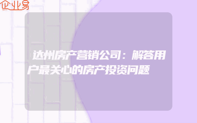 - 达州房产营销公司:解答用户最关心的房产投资问题