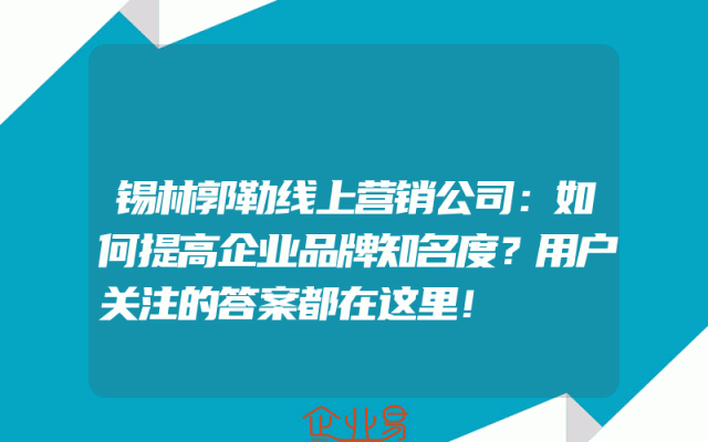 - 锡林郭勒线上营销公司:如何提高企业品牌知名度?用户关注的答案都在这里!