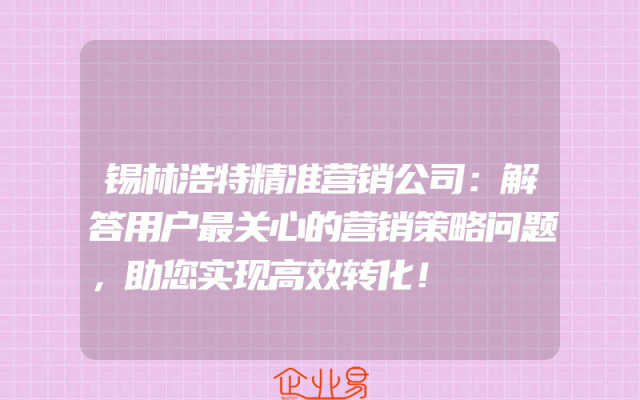 - 锡林浩特精准营销公司:解答用户最关心的营销策略问题,助您实现高效转化!
