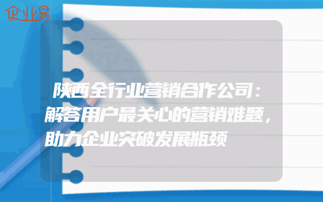 - 陕西全行业营销合作公司:解答用户最关心的营销难题,助力企业突破发展瓶颈