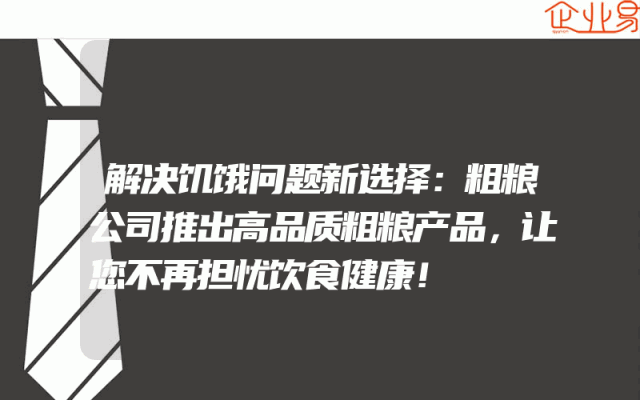 - 解决饥饿问题新选择:粗粮公司推出高品质粗粮产品,让您不再担忧饮食健康!