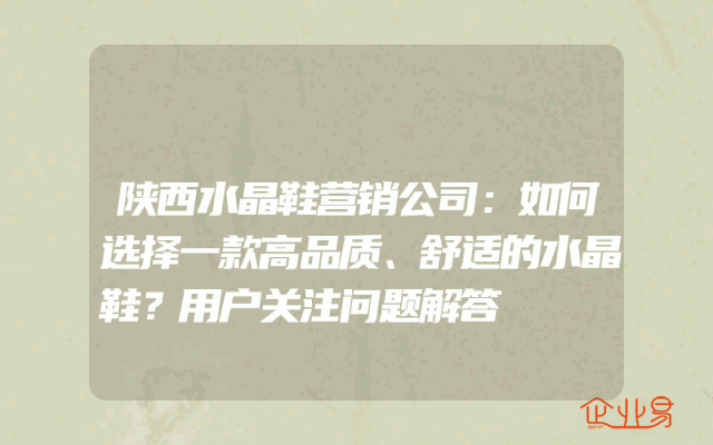 - 陕西水晶鞋营销公司:如何选择一款高品质、舒适的水晶鞋?用户关注问题解答