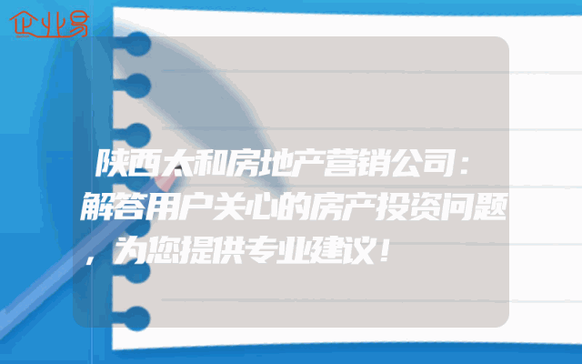 - 陕西太和房地产营销公司:解答用户关心的房产投资问题,为您提供专业建议!