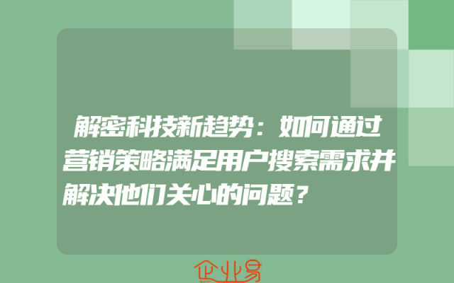 - 解密科技新趋势:如何通过营销策略满足用户搜索需求并解决他们关心的问题?
