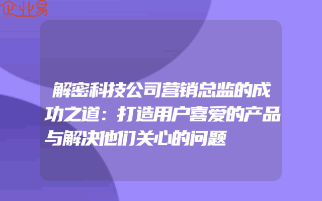 - 解密科技公司营销总监的成功之道:打造用户喜爱的产品与解决他们关心的问题