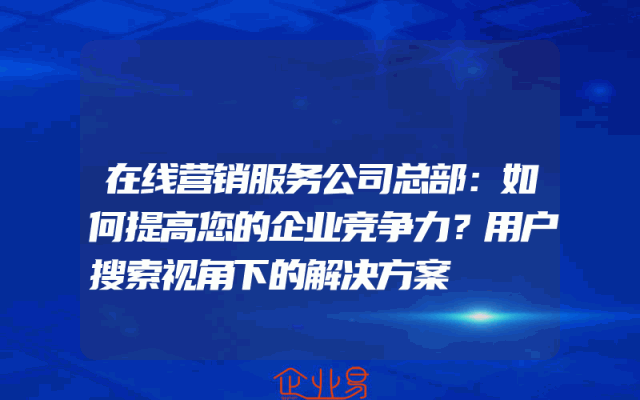 - 在线营销服务公司总部:如何提高您的企业竞争力?用户搜索视角下的解决方案