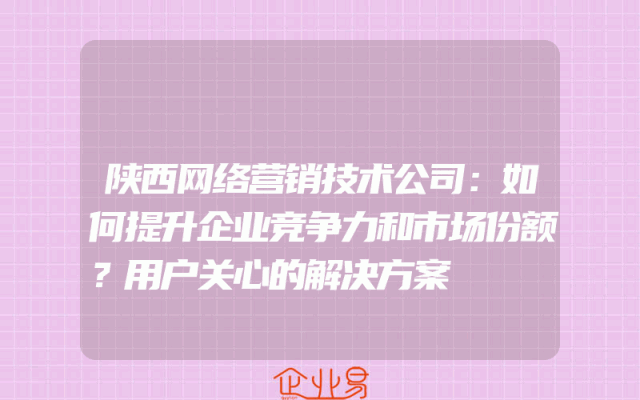 - 陕西网络营销技术公司:如何提升企业竞争力和市场份额?用户关心的解决方案