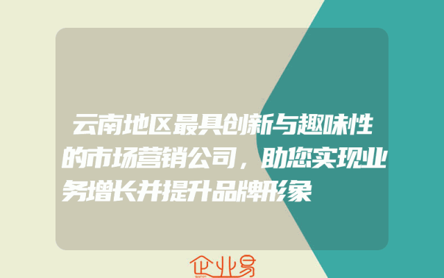 - 云南地区最具创新与趣味性的市场营销公司,助您实现业务增长并提升品牌形象