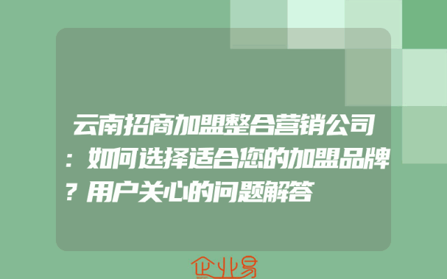 - 云南招商加盟整合营销公司:如何选择适合您的加盟品牌?用户关心的问题解答