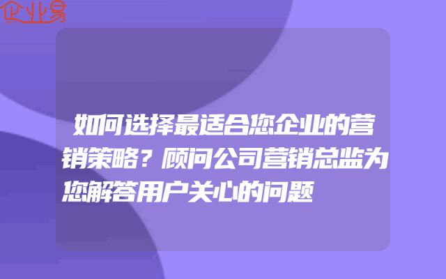 - 如何选择最适合您企业的营销策略?顾问公司营销总监为您解答用户关心的问题