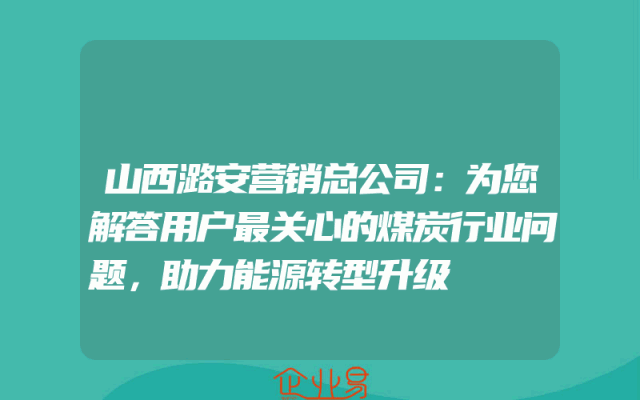 - 山西潞安营销总公司:为您解答用户最关心的煤炭行业问题,助力能源转型升级