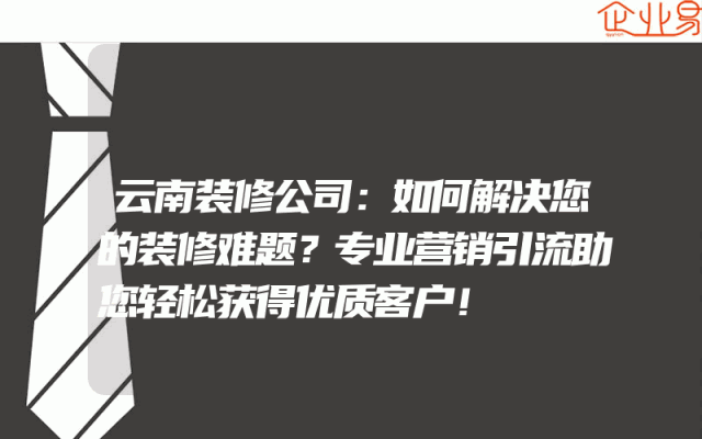 - 云南装修公司:如何解决您的装修难题?专业营销引流助您轻松获得优质客户!