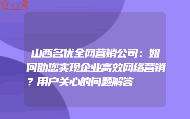 - 山西名优全网营销公司:如何助您实现企业高效网络营销?用户关心的问题解答