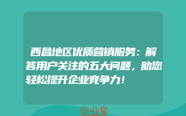 - 西昌地区优质营销服务:解答用户关注的五大问题,助您轻松提升企业竞争力!
