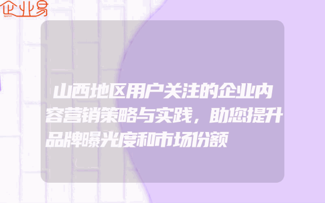 - 山西地区用户关注的企业内容营销策略与实践在当今的数字化时代,企业需要通过有效的内容营销策略来提升品牌曝光度和市场份额。特别是在竞争激烈的市场环境中,了解目标用户的需求和兴趣,制定符合其期望的内容营销策略至关重要。本文将探讨山西地区用户关注的