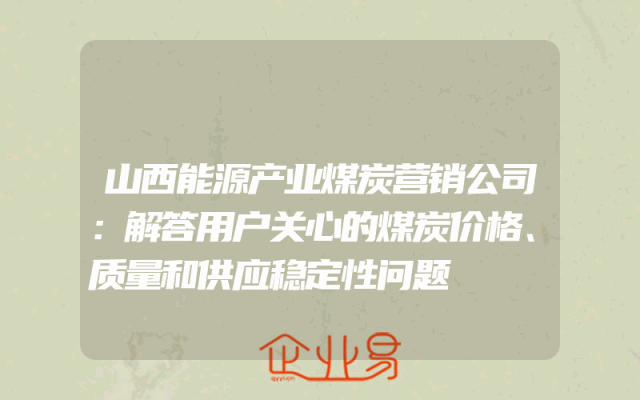 - 山西能源产业煤炭营销公司:解答用户关心的煤炭价格、质量和供应稳定性问题