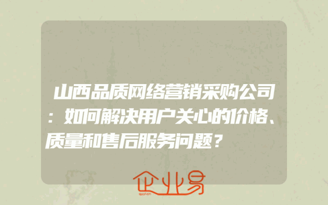- 山西品质网络营销采购公司:如何解决用户关心的价格、质量和售后服务问题?
