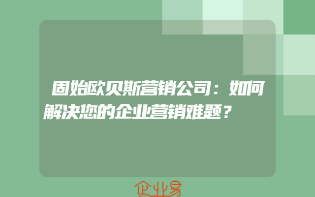 - 固始欧贝斯营销公司:如何解决您的企业营销难题?