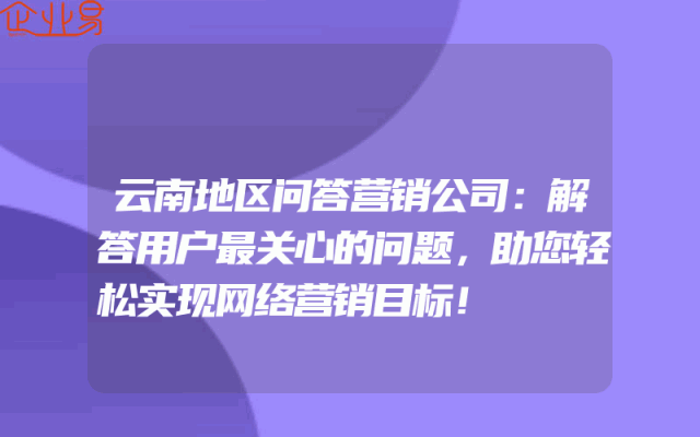 - 云南地区问答营销公司:解答用户最关心的问题,助您轻松实现网络营销目标!