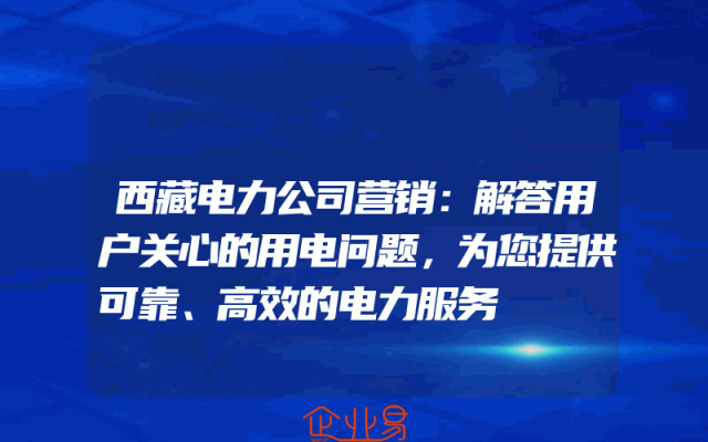 - 西藏电力公司营销:解答用户关心的用电问题,为您提供可靠、高效的电力服务