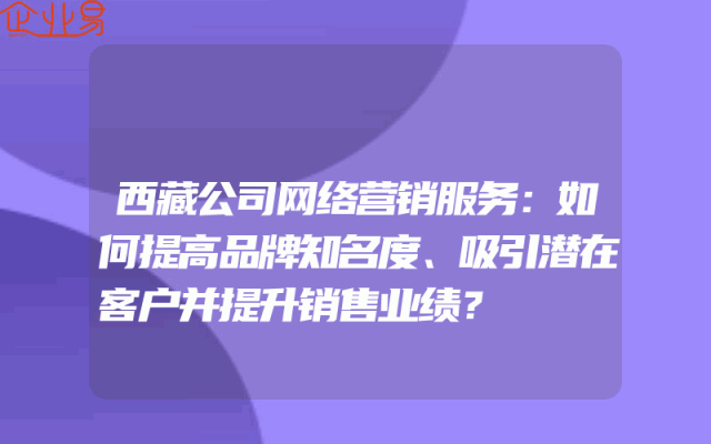 - 西藏公司网络营销服务:如何提高品牌知名度、吸引潜在客户并提升销售业绩?