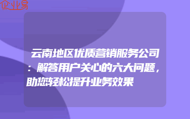 - 云南地区优质营销服务公司:解答用户关心的六大问题,助您轻松提升业务效果